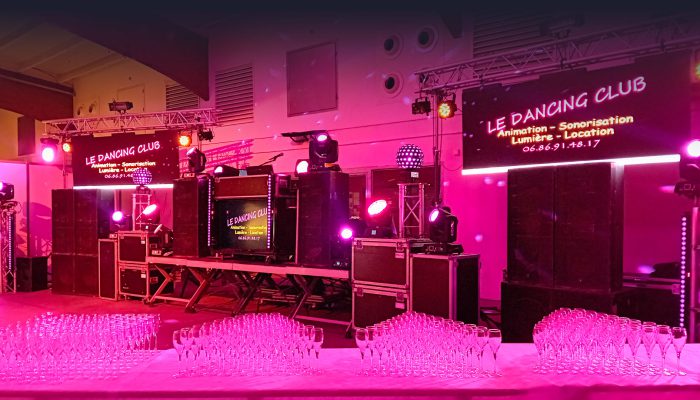 Le Dancing Club propose à la location des écrans led géants (résolution P3,91) pour l’ambiance. Ceux-ci permettent une visibilité accrue, un design visuel immersif, la diffusion de live et de replay, la création d’effets visuels synchronisés avec la musique.